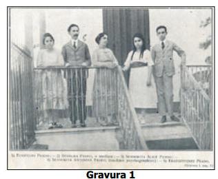 Da esquerda para direita: 1) Srta. Antonina Prado (médium psicográfica); 2) Eurípedes Prado; 3) Sra. Anna Prado (a médium); 4) Alice Prado; 5) Erastóstenes Prado.