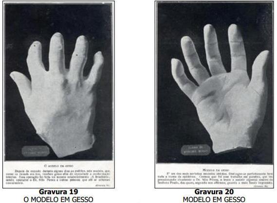 É um dos mais perfeitos modelos obtidos. Distingue-se perfeitamente bem toda a trama da epiderme. Cremos que foi esse trabalho em parafina, que impressionando vivamente o Dr. Nilo Pena, o levou a assistir a algumas sessões da Sra. Prado, das quais, segundo nos afirmou, guarda a mais funda impressão.